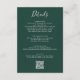 Eleganter Emerald Green Script Wedding QR Code Begleitkarte