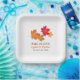 "Fall in Liebe" thematische Hochzeitspapiere Teller mit orangen, gelben und roten Ahorn Blätter und Schokoladenbraun personalisierbare Monogramm der Braut- und Bräutigam-Namen und Hochzeitstag. Personalisieren Sie den benutzerdefinierten Text mit einem Monogramm der Braut- und Bräutigam-Namen und Hochzeitstermin.