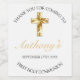 Feiern Sie mit Ihren Freunden und Ihrer Familie mit diesem eleganten Gold Cross First Holy Empfang Wine Label. Dieses Design zeichnet sich durch ein goldenes Kreuz vor einem einfachen weißen Hintergrund aus. Personalisieren Sie den Schriftart und die Farbe und ändern Sie den Text und das Datum, um Ihre Bedürfnisse Anzug.