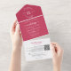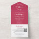 Eleganter Floral Magenta Monogram QR Code Hochzeit All In One Einladung