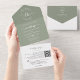 Eleganter floraler Sage Green Monogram QR Code Hoc All In One Einladung