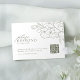 Elegante handgezeichnete Illustration der Blume und moderne Schriftzeichen-Details, in dunkelgrün und weiß, einfach und romantisch. Große Blumenkarten mit QR-Code für moderne rustikale Hochzeit, Hochzeitsfeiern im Garten und einfache Hochzeit im Sommer und Winter. Vollständig anpassbar mit allen Farben, um Ihre Hochzeit Thema.