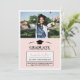Feiern Sie den Absolventen mit diesem personalisierten und eleganten Abschluss! Mit einem großen Foto des Absolventen, minimalistischen Cap-Ikone und sanften Rosatönen ist dieses Design perfekt für High School- oder Uni-Noten. Voll anpassbar, um Ihre Feier Anzug.