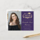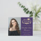 Formal Ankündigung des lila Uni-Abschlusses Postkarte mit dem Graduiertenjahr, eine Darstellung des Lorbeerkranzes, ein GradCap Topper, ein Diplom, ein Foto des Absolventen und ihren Namen in einer eleganten Goldschrift. Fügen Sie ihre Schule, Hauptfach, Ehren oder künftige Pläne. Fügen Sie auf der Rückseite ein zusätzliches Foto und Ihre personalisierte Nachricht hinzu.