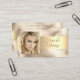 Dieses einfache, elegante Design des schönen Gesichts einer Frau auf goldenem Hintergrund funktioniert gut für Haar- und Schminksalons. Personalisieren Sie diese Visitenkarte mit Ihrem Namen, Beruf, Adresse, Telefonen, Foto und Websites.