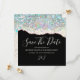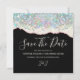 Eleganter, holografischer Glitzern Glitzer Staub Elfenbeinschwarz Save the Date