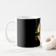 Fett, stilvoll und elegant Schwarz-Imitat-Gold-Tasse mit einem gespaltenen initialen "G" Monogramm mit Schnörkeln und Ihrem Familiennamen oder Vornamen in der Mitte alles in Gold vor einem schwarzen Hintergrund.