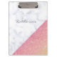 Eleganter geometrischer, weißer Marmor Rose Gold G Klemmbrett