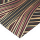 Ein elegant gestreifter Tischläufer ist über einem Holztisch mit einer Touch Raffinesse zu einer Hochzeitsfeier aufgereiht. Die warmen Farben und die aufwändigen Muster schaffen eine charmante und einladende Atmosphäre.