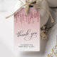 Elegante und schicke personalisierte 50. Geburtstagsparty danke Ihnen Geschenkmarken. "50 & Fabulous" und "danke" sind mit einem stilvollen Kalligraphieskript auf einem rosa ombre Hintergrund geschrieben, mit Rosa und Rose Gold Imitat Glitzer tropft von oben.