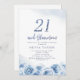 Moderne schicke Imitate blauer Glitzer "21 und glamourös" Drehbuch, trendige eisblaue Aquarell Blumendesign, elegant und stilvoll, großartige Party Einladungen zum 21. Geburtstag.