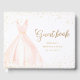 Das elegante Gästebuch Quinceanera mit seinem farbenfrohen, rosafarbenen Kleid mit glänzenden Imitaten, dem Gast-Buch-Drehbuch des Goldenen Glitzer, das sich hervorragend für die 15. Geburtstagsfeier eignet.