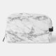 Auf diesem stilvollen Dopp-Kit ist ein weißes und silbernes klassisches Marmormuster mit silbernen glittery Streams für eine Kulisse mit einem eleganten silbernen Lotus-Blume-Design, wo Sie vorne personalisieren können mit einem Namen oder Logo zu einem Zen-Flair.