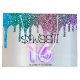 Adorable süße 16 und Regenbogen Tropfen auf silberem Hintergrund. Jedes Mädchen würde Liebe haben, ihren Namen auf diesem stilvollen Design personalisiert zu haben.