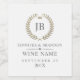 Elegantes, mit Monogramm Weinetikett. Weiße Imitate Glitzer tönt Lorbeerkranz mit einem anpassbaren Monogramm. Weißer, veränderbarer Hintergrund und anpassbare Textvorlage.