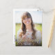 Diese elegante Abschluss-Postkarte besticht durch hübsche Goldkalligraphie und ein großes Foto. Die goldene Schrift, die unten steht, liest "Graduate" in Kleinbuchstaben, die mit eleganten Schnörkeln verziert sind. Fügen Sie den Namen des Absolventen und das Jahr des Abschlusses an die Vorderseite unter dem Typografie-Design. Auf der Rückseite der Abiturpostkarte können Sie eine Nachricht an Empfänger und/oder Graduiertengruppe Informationen hinzufügen.