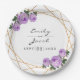 Eleganter Gold Glitzer Geo Lila Blumenhochzeit Pappteller