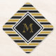Dieser personalisierte Untersetzer aus Papier verfügt über ein individualisierbares Goldmonogramm in schwarzem Rahmen auf einem Imitat mit goldenem Glitzer, schwarz-weiß gestreiftem Hintergrund.