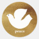 Die Botschaft des Friedens in dieser Ferienzeit verbreiten. Schöne moderne weiße Taube des Friedens und Typografie. Imitate goldener Hintergrund. Fügen Sie Ihre eigene persönliche Nachricht hinzu. Perfekter Umschlag, um Ihre Ferienkarten, die Sie an Familie und Freunde schicken, an Ihre Ferienkarte anzubringen.