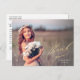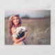 Dieser elegante Abschluss Dankeschön Postcard verfügt über ein volles Foto und eine elegante Kalligraphie. "Danke" ist in hübscher Goldschrift in der unteren rechten Ecke geschrieben, mit dem Namen des Absolventen und Abschluss Jahr unten in Weiß. Dieses Design aus Gold und Weiß überlagert ein volles Foto des neuen Absolventen (horizontal/landschaftlich orientiert). Auf der Rückseite können Sie eine benutzerdefinierte Nachricht an Empfänger schreiben oder den Vorlagentext löschen, um einen leeren Bereich für einen handschriftlichen Hinweis zu erstellen.