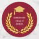 Gold metallische Optik Konfetti und Graduierdeckel mit goldenem Lorbeer auf bordeauxroten Tisch Confetti. Text kann personalisiert sein. Ideal für Abschlüsse! Shine wie ein glänzendes Stück Gold!!