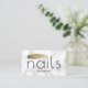 Schönes und modernes Design der Visitenkarte des Nagelkünstlers mit Imitaten goldenem Nagellack, weißer Marmorstruktur und elegantem Kalligraphie-Schriftart. Personalisieren Sie Ihre Namen und Kontaktinformationen.