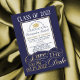 Elegantes Gold, Weiß und Blau Design für eine Graduierungsparty, bitte personalisieren Sie jeden Teil des Textes. Save the Date mit Handschrift. Abschluss hat dieses Element enthalten. Abschluss kann entweder von der Oberschule, von der Universität oder von der Uni kommen.