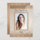 Dieses elegante Abschluss-Hotel besticht durch seine hübsche, antike goldene Fassade und den Marmor. Das Foto Ihres Absolventen nimmt die mittlere Position auf einem halbtransparenten Feld und in einem passenden goldbraunen Doppelrahmen ein. Benutzerdefinierte Textfelder liegen über und unter dem Bild. Die Rückseite der Einladung hat den weichen goldmarmorierten Hintergrund. Einfache Schönheit, die das Foto lasse glänzen!