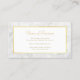 Eine Visitenkarte aus weißem Rosenmarmor mit elegantem goldfarbenem Rahmen, die mit einer romantischen Rosa geschmückt ist. Sie können sich durch den Zusatz von Namen und Beruf persönlich gestalten.