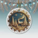 Dieser Rentierdekor mit runder Keramik ist mit einem eleganten Rahmen in Weiß- und Goldfarben versehen, der ein festliches, goldenes Design umgibt. Der Hintergrund zeigt eine ruhige Weihnachts-Schneeszene mit einem dunkelblauen Himmel voller Schneeflocken. Unten, eine malerische Szene einer Winterschneelandschaft mit Bäumen und Schnee. Goldhirsche mit Antlers fügt anmutig eine Touch von Magie und Weihnachten Urlaubsgeist hinzu. Das doppelseitige Design sorgt dafür, dass der Schmuck, egal wie er sich dreht, immer festlich und vollständig aussieht. 🦌 🎄