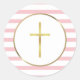 Eleganter Rosa- und Weißstreifen-Aufkleber mit einem goldenen Kreuz und einem eleganten Imitat mit Goldfolie. Ideal für jeden Christlichen religiösen Anlass. Entwickelt von Thisisnotme©