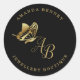 Eleganter Goldschmetterling auf schwarz, monogravi Runder Aufkleber