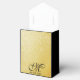 Ein luxuriöses Gefälligkeitskasten mit goldenem Folieneffekt, umgeben von Mitternachtsschwarz mit kontrastweißer Schrift und Band. Sie können es personalisieren, indem Sie auf den Link anpassen klicken. Dies ist Teil einer eleganten Hochzeitskollektion, die vollständig personalisiert sein kann.