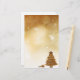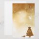 Eine wertvolle und elegante frohe Weihnachtsbilderung mit einem Weihnachtsbaum und einem Weihnachtsbaumball mit einem edlen Band in edlem Gold auf einem glitzernden festlichen Background.
