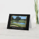 Eine ruhige Golfplatz-Szene mit einem Golf-Grün und Wasser-Feature sendet Ihr Beileid an die Lieben eines verstorbenen Golfers. Ein eleganter Goldrahmen schafft ein Gefühl von feierlicher Bedeutung. An die gute Zeit zu erinnern, ist der Titel. Der gesamte Text auf dem Cover und im inneren Beileid kann personalisiert sein.