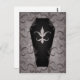 Eine Postkarte mit einem eleganten schwarz-gotischen Sarg mit einem grungy-Damast-Hintergrund. Schreib deinen Halloween-Gruß auf dem Rücken.