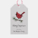 Diese schlichten und eleganten Weihnachtsgeschenke-Tags zeigen eine handgezeichnet Abbildung eines Roten Kardinals, der auf einem Kiefernzweig in schwarzer Tinte auf einem hellgrauen Hintergrund steht. Passen Sie sich mit Ihrem bevorzugten Urlaubsgruß und Ihrem Familiennamen an.