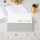 Dieses moderne, elegante Design zeichnet sich durch einen breiten weißen, horizontalen oberen Farbblock gegenüber einem hellgrauen unteren Farbblock aus. Der Text ist optional und kann personalisiert werden.