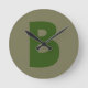 Eleganter Grüner Monogram-Initialbrief Runde Wanduhr