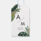 Moderne Tropical Monogram Fevor Tag. Fügen Sie Ihre Gastgeschenke Hochzeiten die perfekte Touch mit unseren modernen tropischen Geschenketiketten hinzu. Diese Anhänger sind mit üppigen Blätter aus grüner Palme und einem zarten vergoldeten Rahmen (Imitation) auf weißem Karton gestaltet und bringen einen eleganten botanischen Flair zu Ihrer Feier. Vollständig anpassbar mit Ihren Initialen, dem Hochzeitstag oder einem einfachen "Danke", fügen sie jedem Gefallen oder Geschenk ein persönliches und stilvolles Element hinzu. Das Design koordiniert nahtlos mit unserer kompletten Modern Tropical Wedding Collection und schafft so ein zusammenhängendes und anspruchsvolles Aussehen für Ihre Veranstaltung. Ideal für Hochzeiten, Brautpartys oder alle tropischen Veranstaltungen, diese Tags sind auf hochwertigem Papier gedruckt und verfügen über einen passenden Bindegarn.Schönes tropisches, botanisches Design. Editieren Sie Ihr Produkt in wenigen Minuten. Sie können Schriftart/Größe/Farbe und Position mit "weiter personalisieren" ändern.