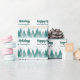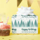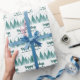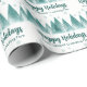 Eine elegante Reihe von Tannenbäumen und Schneeflocken über Ihrem personalisierten Happy Holidays Drehbuch und Ihrem Firmennamen in schönem aquamarinem Grün unter dem schneebedeckten Wald. Ein modernes Corporate-Urlaubspaket mit Ihrer individuellen Botschaft auf einem festlichen Firmenverpackungspapier für das Marketing Ihrer Kunden.