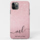 Herrliche personalisierte iPhone Gehäuse-Design mit Gradienten Imitate rosa Rosengold, Imitate Glitzer Textur und elegante Kalligraphie Schriftart. Personalisieren Sie das Produkt mit Ihren Initialen und Ihrem Namen.
