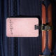 Herrliche personalisierte Gepäckmarke Design mit Gefälle Imitate rosa Rosengold, Imitate Glitzer Textur und elegante Kalligraphie Schriftart. Personalisieren Sie das Produkt mit Ihrem Namen und Ihren Daten.