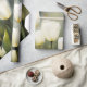 Wunderschöne Blume aus weißem Tulpenhain in einer ruhigen Gartenlandschaft. Dieses exquisite Aquarellbild zeigt die zarten Blätter und das üppige grüne Tulipengrün, perfekt für Naturliebhaber und Blumenfreunde.