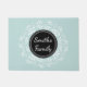 Zeitgenössische Türmatte mit tadellosem blauem Blumenwreath und personalisiertem Text.