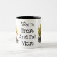 Genießen Sie das Wesen des Herbstes mit unserer charmanten 2-Töne 15oz Tasse. Diese Tasse ist mit zwei aufwändigen Herbstblattarrangements geschmückt, eine auf beiden Seiten, eine visuelle Feier der Saison. Die warmen Farbtöne der Blätter ergänzen das gemütliche Herbstambiente. Die köstliche Nachricht "Warm Brews and Fall Views" rundet das Design ab und lädt Sie ein, Ihre Lieblingsgetränke in Gesellschaft der Wärme der Saison zu genießen. Diese Tasse ist der ideale Begleiter, um Ihre Lieblings-Herbstbrauen zu geniessen und dabei die wechselnden Farben und beruhigende Momente zu genießen.