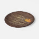 Perfekt personalisierte rustikale Cocktail-Papier-Teller für Ihre Hochzeitsfeier. Herbst / Herbst Themenfarben in Gold in den metallischen Ahornblättern orange und dunkle Holztafeln. Entdeckt in 'FALL IN LIEBE - LAND' Hochzeitskollektion.