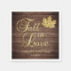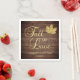 Ideal für Ihre Hochzeitsfeier, personalisierte Cocktail-Papierservietten zum rustikalen Thema. Herbst / Herbst Thema Farben in Gold im metallischen Ahornblatt und dunklen Holz Panel. Entdeckt in 'FALL IN LIEBE - LAND' Hochzeitskollektion.