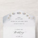 Elegante All-in-One Hochzeitseinladung mit perforierter UAWG-Postkarte mit zartem Aquarellhimmel, Sternen und Mond, die Ihre Hochzeitsdetails umrahmen. Oberer Innenteil mit schönen Mondphasen. Dainty Sterne und Details auf Monden in Imitaten Goldfolie. Moderne handgeschriebene Kalligrafieelemente. Umweltfreundlich, da keine zusätzlichen Beilagen, RSVP-Karten oder sogar Umschläge nötig sind, hat diese Einladung alles! Die Möglichkeit, sowohl Hochzeitsfeier und Empfang Details hinzuzufügen, als auch UAWG postcard bereit für die Gäste zu füllen und zu schicken! Option, Einladungen mit gedrucktem (oder Handschrift später) Gästennamen auf der Rückseite zu bestellen, damit Sie eine Karte ohne Umschlag verschicken können - ODER - wenn Sie einen Umschlag bevorzugen, löschen Sie einfach den Namen und die Adresse von den Textfeldern, um sie zu entfernen, oder fügen Sie stattdessen ein Angebot hinzu. Ein attraktives Design für das elegante, aber dennoch praktische und Öko-freundliche Paar! Teil unserer" White, Gold und Silver Celestial Stars and Moon" Kollektion mit einer Vielzahl von Produkten zur Koordination. Besuchen Sie die gesamte Kollektion unter: https://www.zazzle.com/collections/gold_white_and_silver_celestial_stars_and_moon-119446192561160871 Das gleiche Design mit Text in goldenen Farbtönen auch verfügbar.