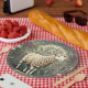 Eleganter Hintergrund der Schaflavendel Pappteller